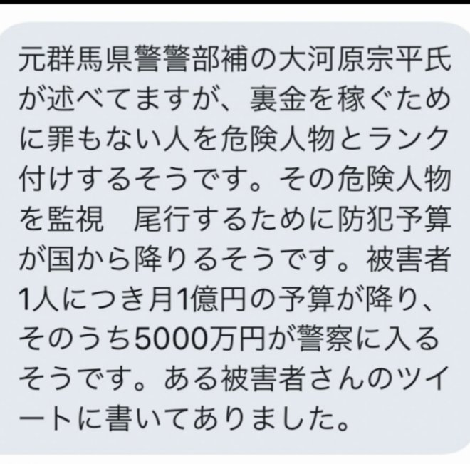 私たち集団ストーカー被害者は、このような勢力のモルモットにされている状況にあるのです。上記2つめの動画で山本太郎氏が語っていますが、弁護士をつけることにより解決の幅が広がります。